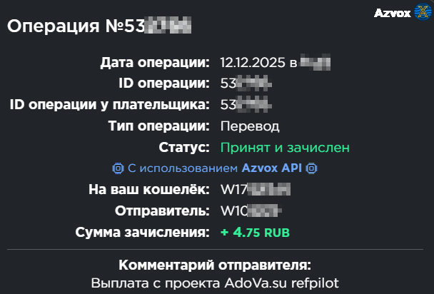 Выплаты: платит / проверено 12.12.2025 ↗ / Azvox, YooMoney, Perfect Money (USD)