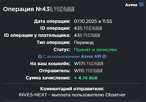 Выплаты: платит / проверено 07.10.2025 ↗ / Azvox