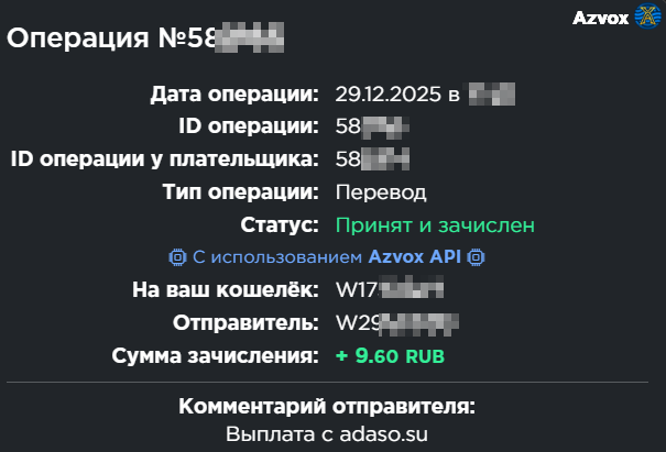 Выплаты: платит / проверено 13.12.2025 ↗ / Azvox, FKWallet