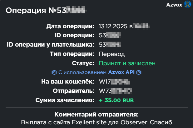 Выплаты: не платит / проверено 03.12.2025 / Azvox, YooMoney