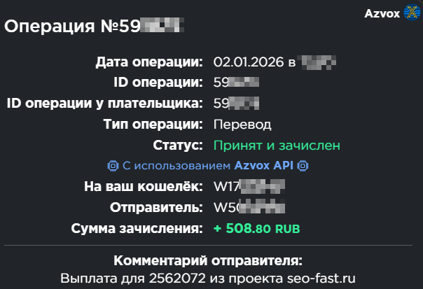 Выплаты: платит / проверено 02.01.2026 ↗ / WMZ, Azvox, FKwallet