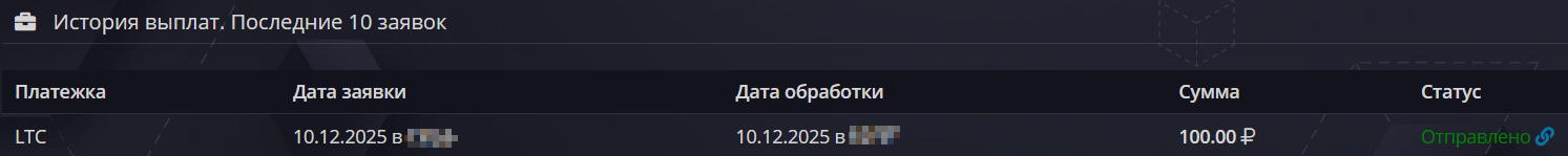 Выплаты: платит / проверено 10.12.2025 ↗ / Webmoney WMZ, Bitcoin Cash, USDT TRC20, Usdt BEP20, USDT ERC20